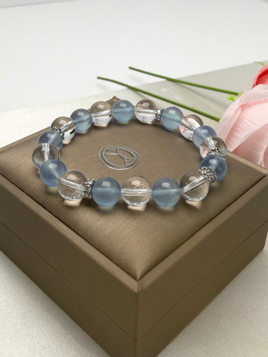 Natural Premium Aquamarine (冰川蓝 海蓝宝)& Clear Quartz Crystal (8.5-9.5mm) Bracelet
