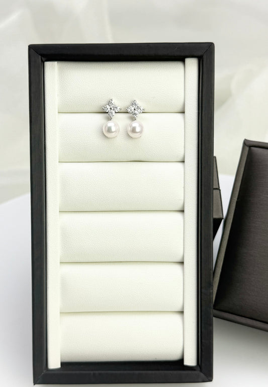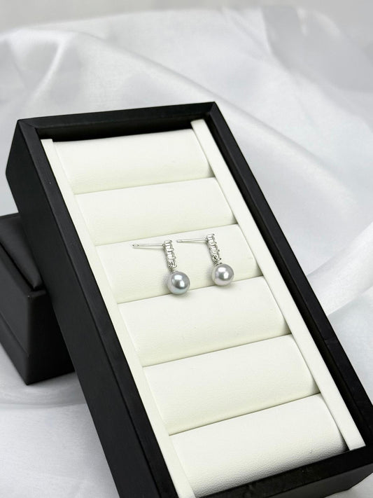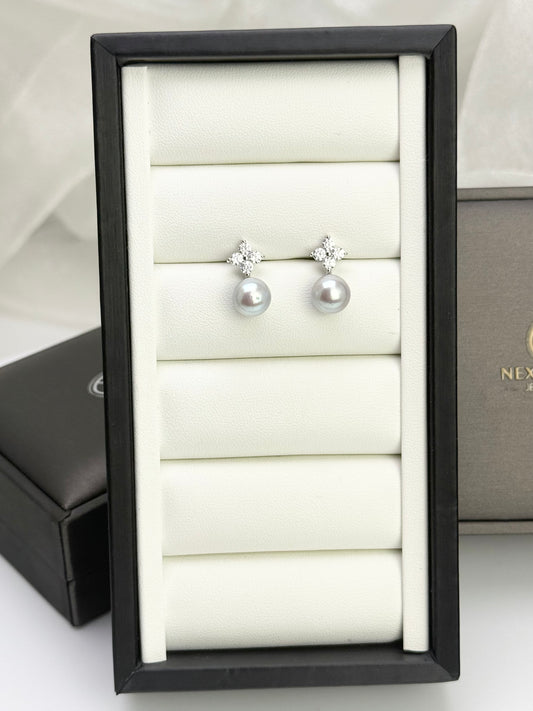 Elegant Saltwater Japan Akoya Silver Blue Pearl Earring (7.5 - 8mm) with CZ | Timeless Pearl Earrings