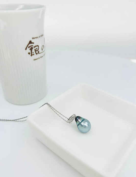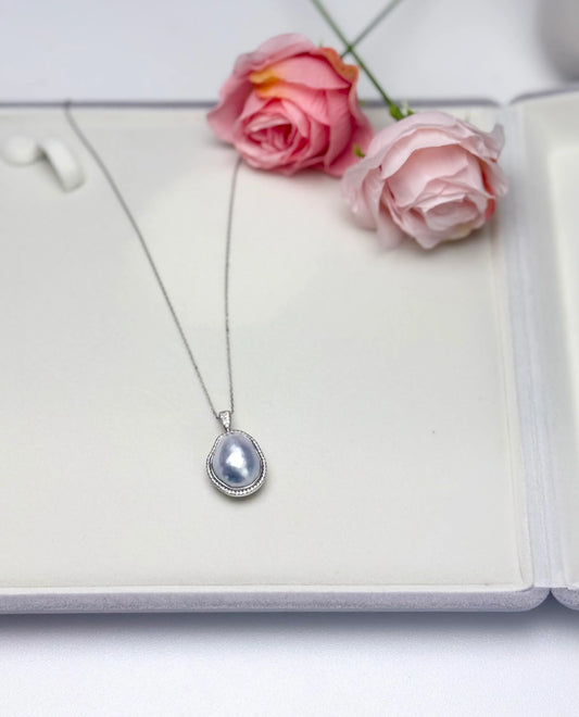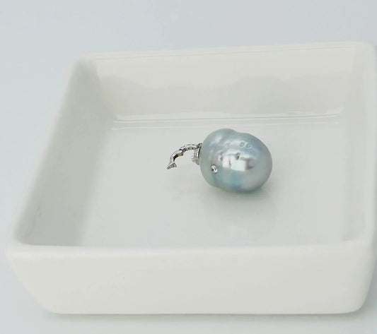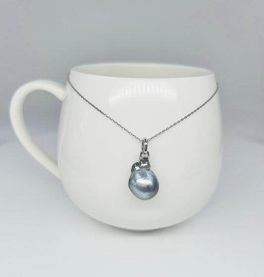 Metallic White Baroque Pearl Pendant with CZ (10.3 x15mm)