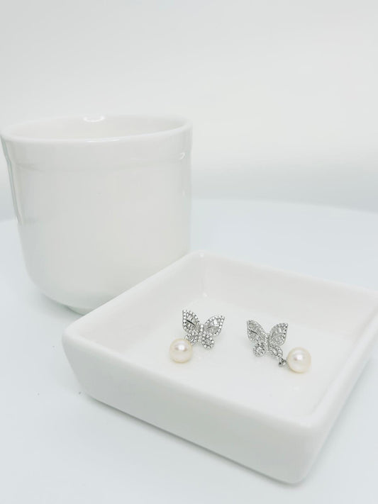 Elegant Butterfly Freshwater Pearls (6.5-7mm) Earrings