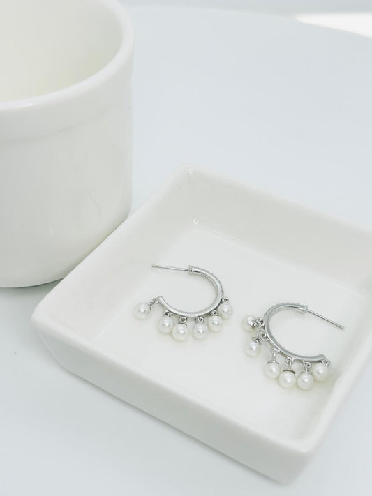 Elegant Semi Hoop Freshwater Pearls (4-4.5mm) Earring with CZ