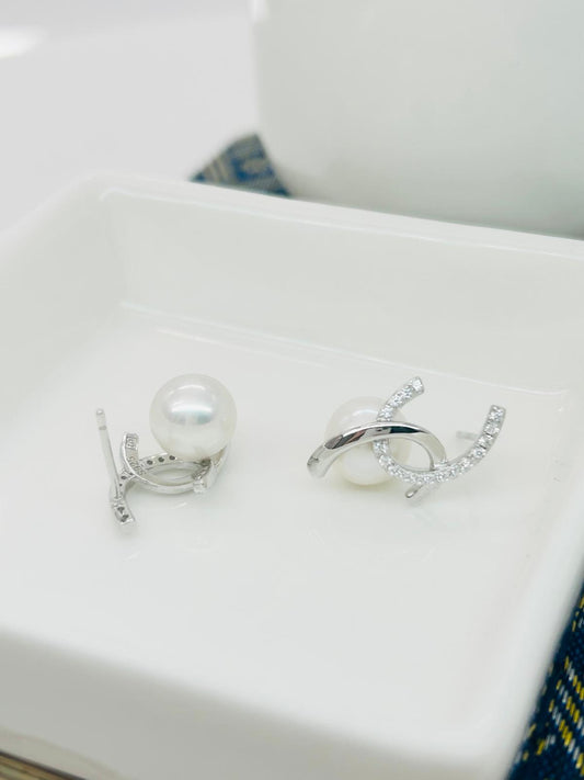Elegent Freshwater Pearls (9-9.5mm) Double-C Earrings