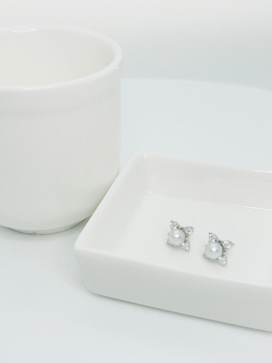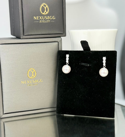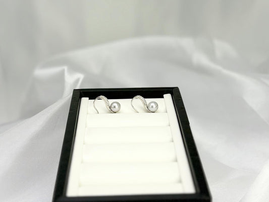 Elegant Freshwater White Pearl Earring (10.3 - 10.5mm) with CZ