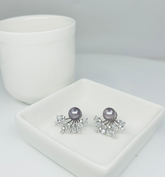 Elegant High Heel Saltwater Japan Akoya Silver Blue Pearl Earring (7.5 - 8mm) with CZ |Timeless Pearl Earrings