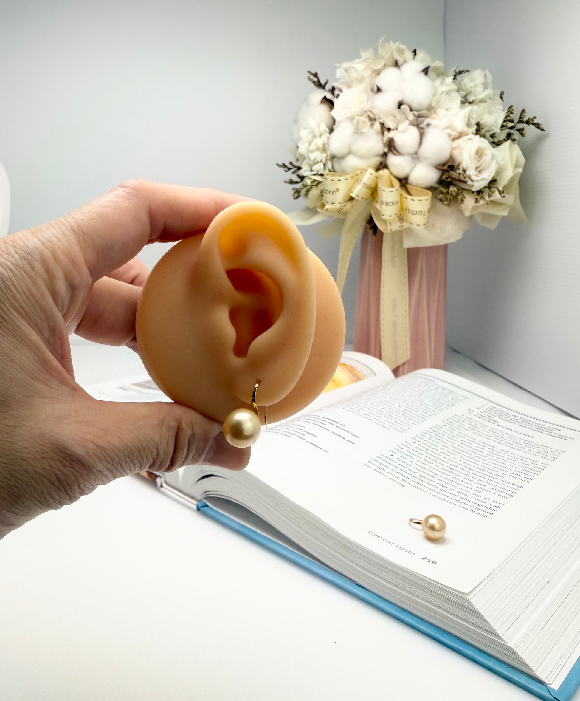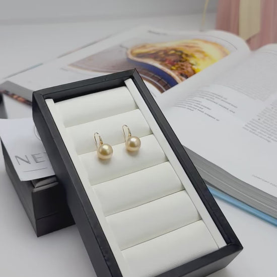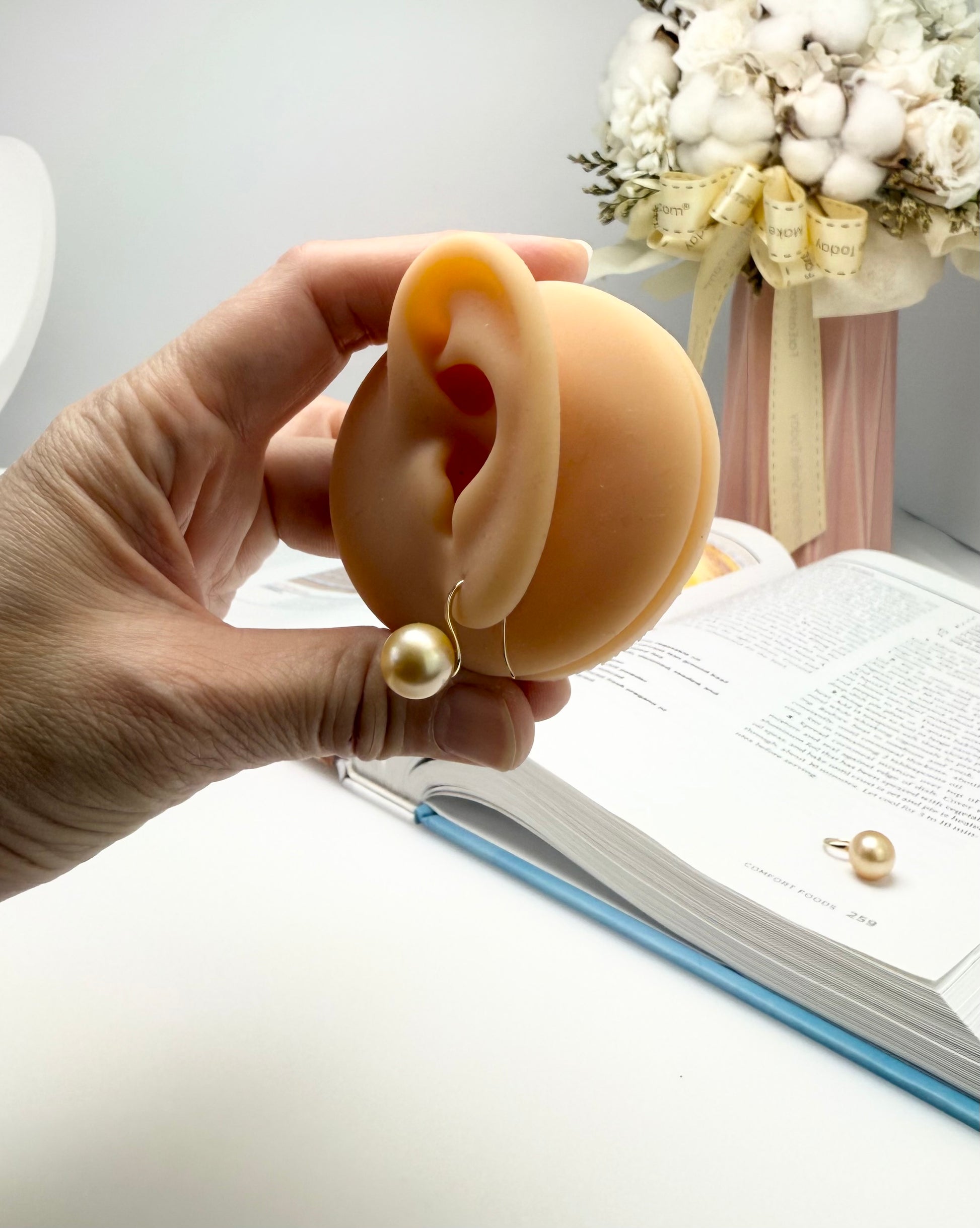 18K Solid Gold High Heel Golden Southsea Pearl Earring (10.5 - 11mm) |Timeless Pearl Earrings