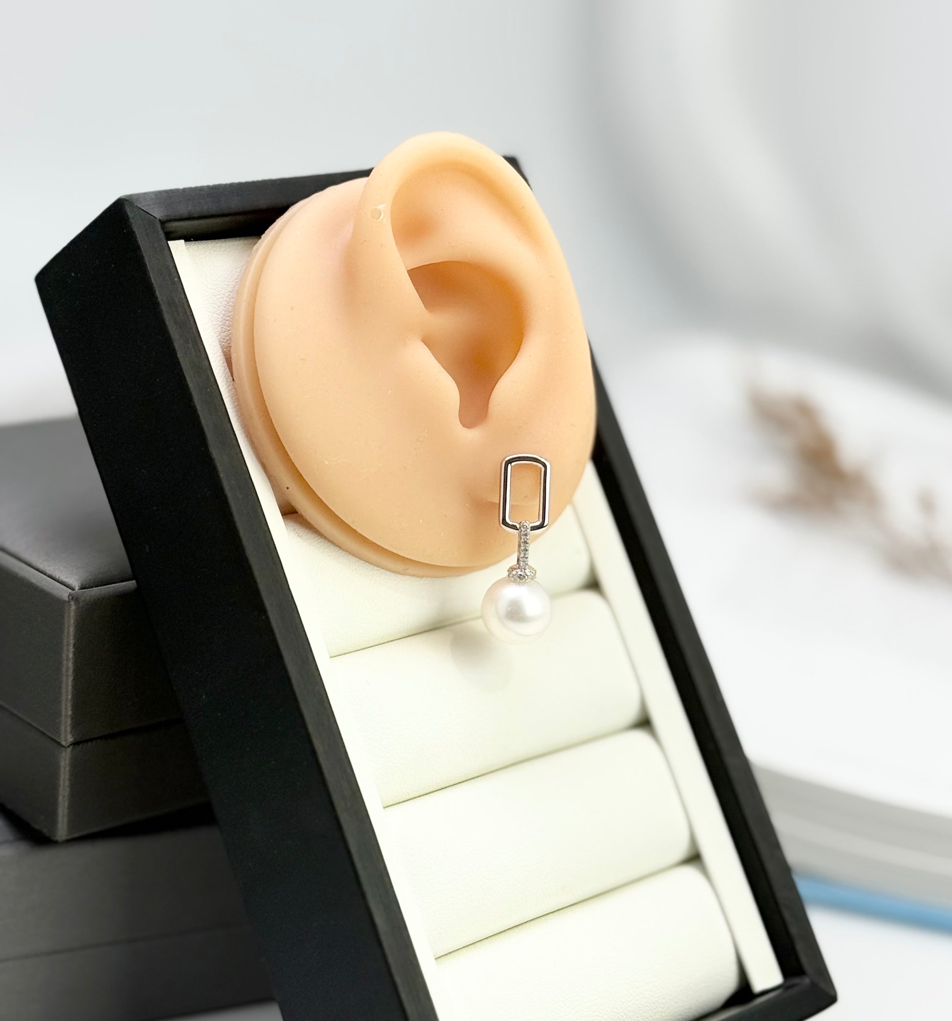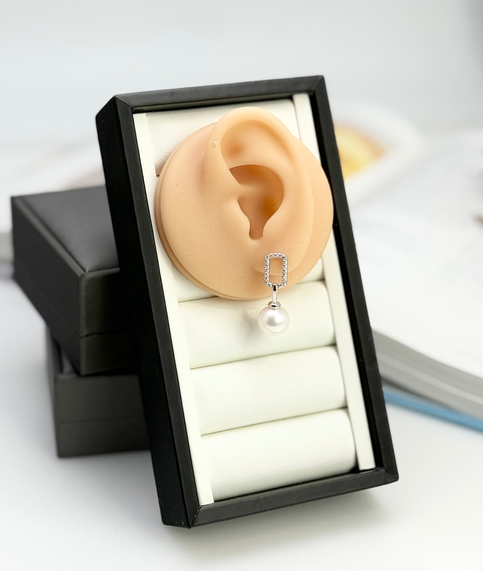 Discover the timeless charm of the Luxe Elegance Freshwater Pearl Drop Earrings. Featuring radiant white Edison pearls, these earrings are designed with a unique rectangular stud detail and a touch of sparkle, adding a contemporary twist to classic pearl jewelry. Perfect for any occasion, they blend sophistication and modern style effortlessly, making them a must-have for your collection.