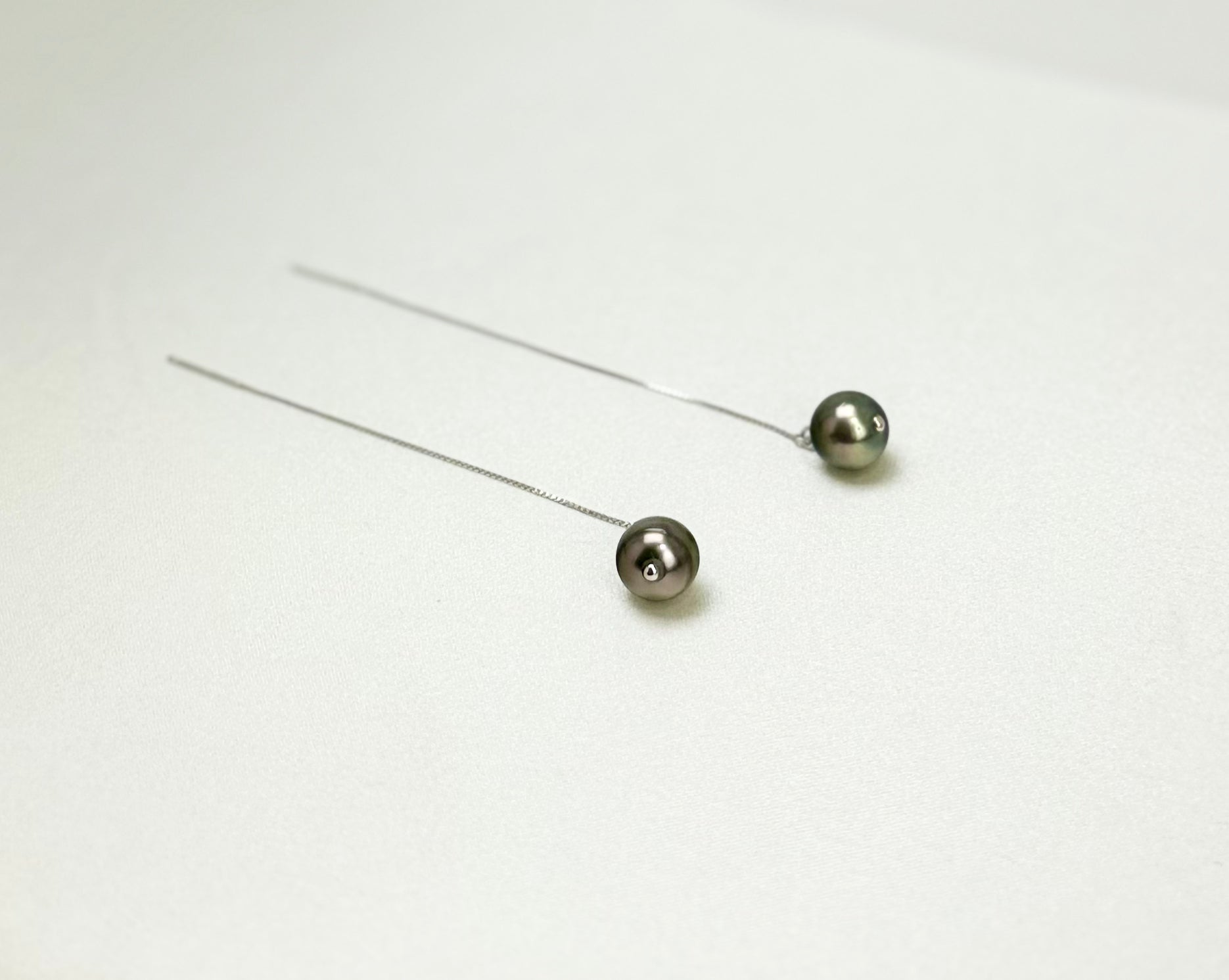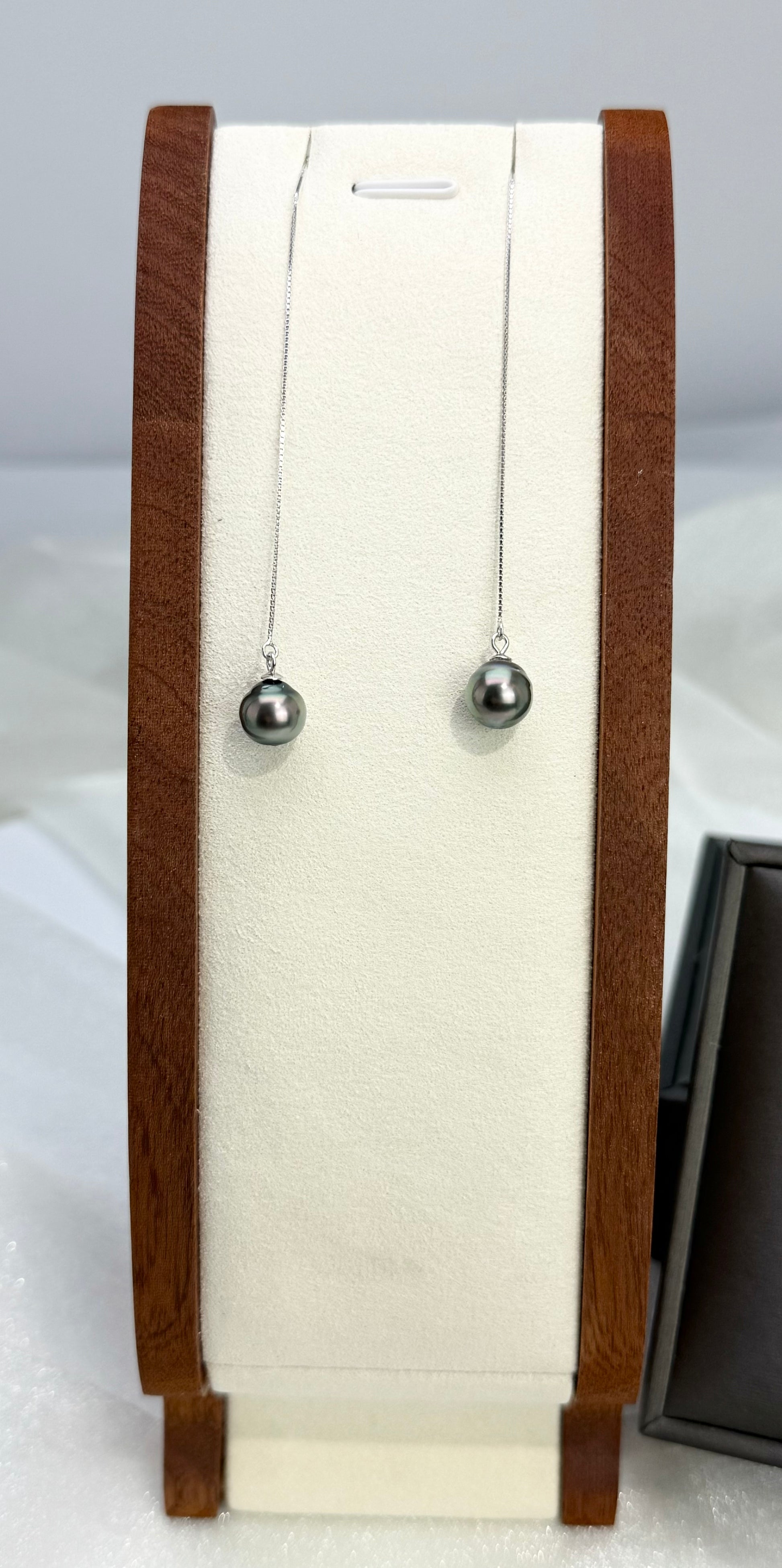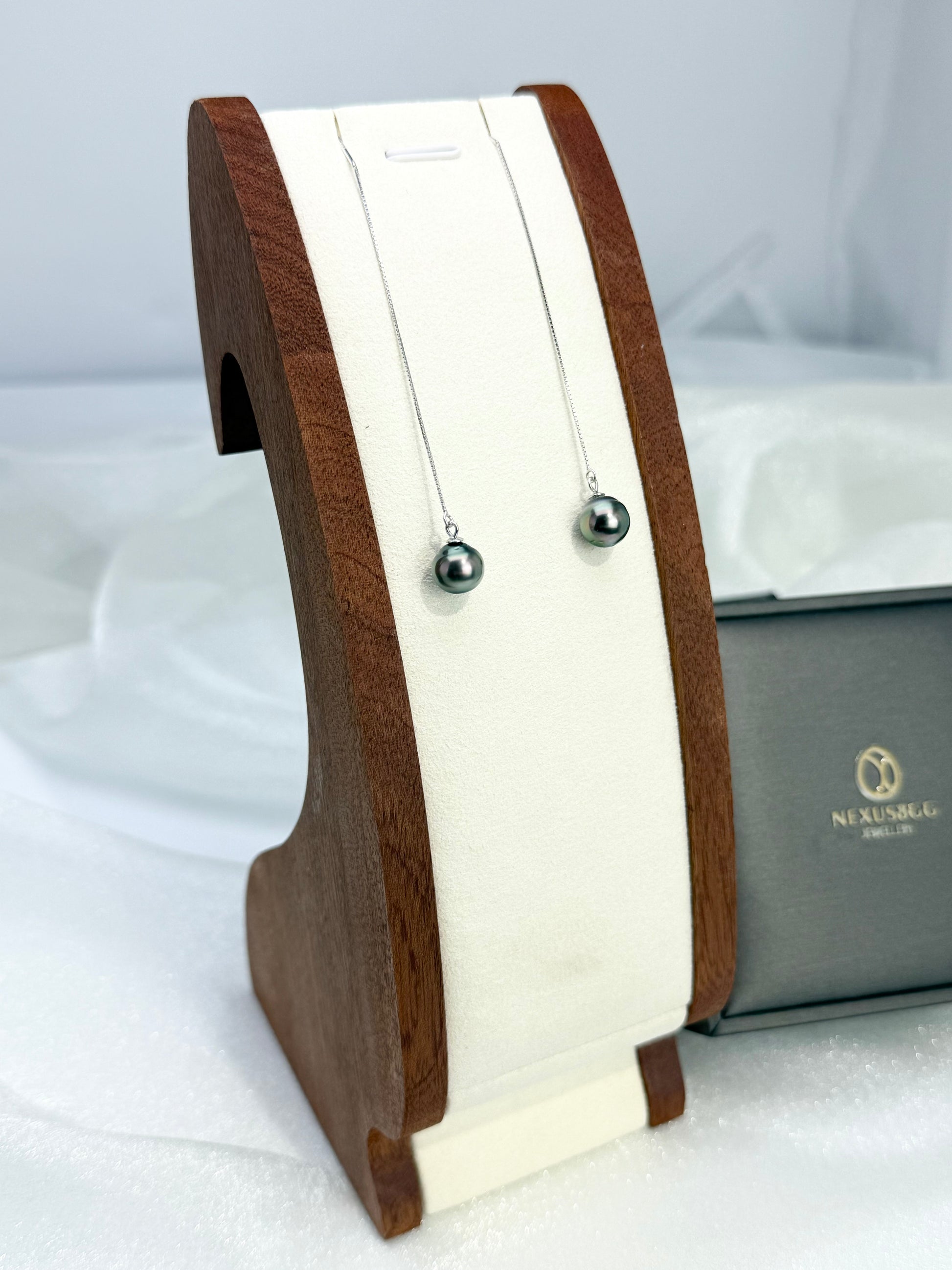 Peacock Green Tahitian Pearl (8.5 - 9mm) Drop String Earrings | Perfect Pearl Jewellery for Every Occasion